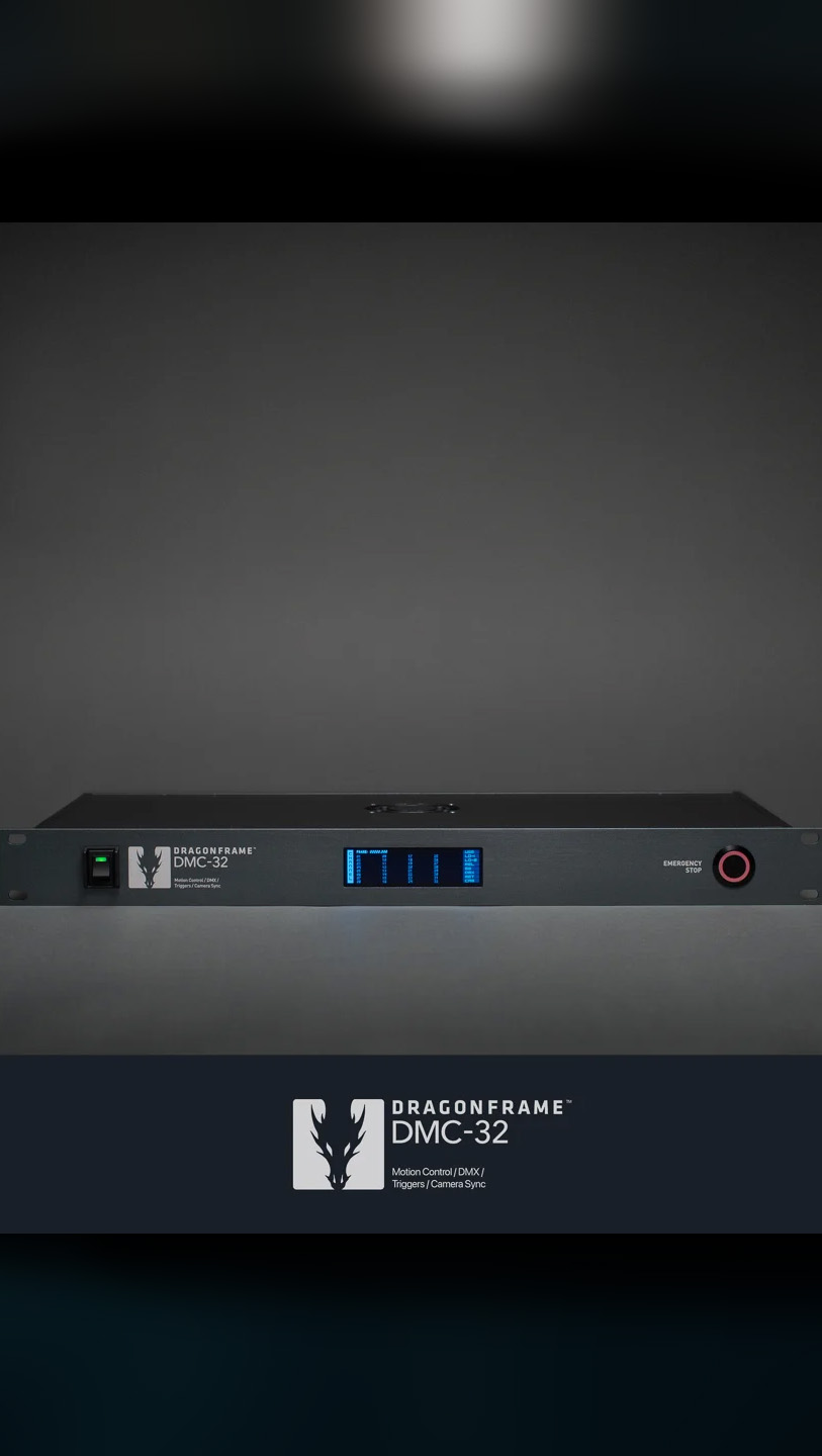 The DMC-32 (Dragonframe Master Controller) is a 32 axis motion control coordinator for use with Dragonframe software.